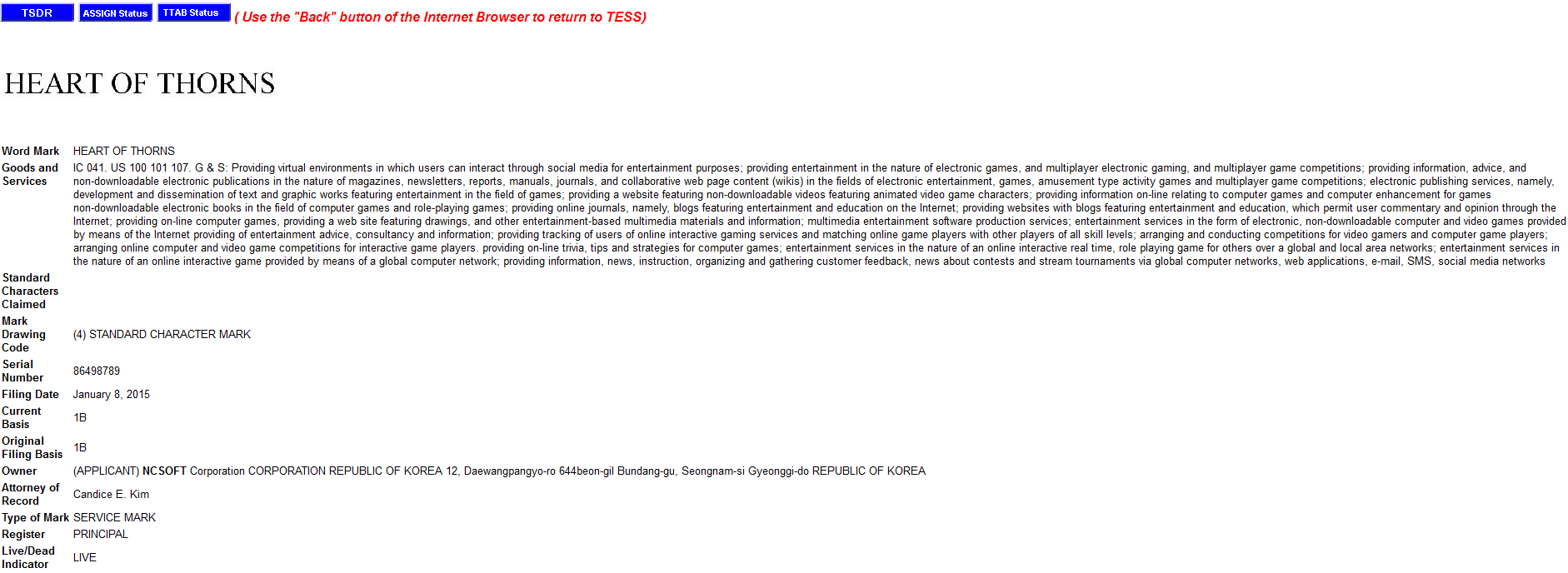 Screenshots taken directly from the United States Patent and Trademark Office shows that the trademark was filed back in January 8, 2015 and is currently Live in status.