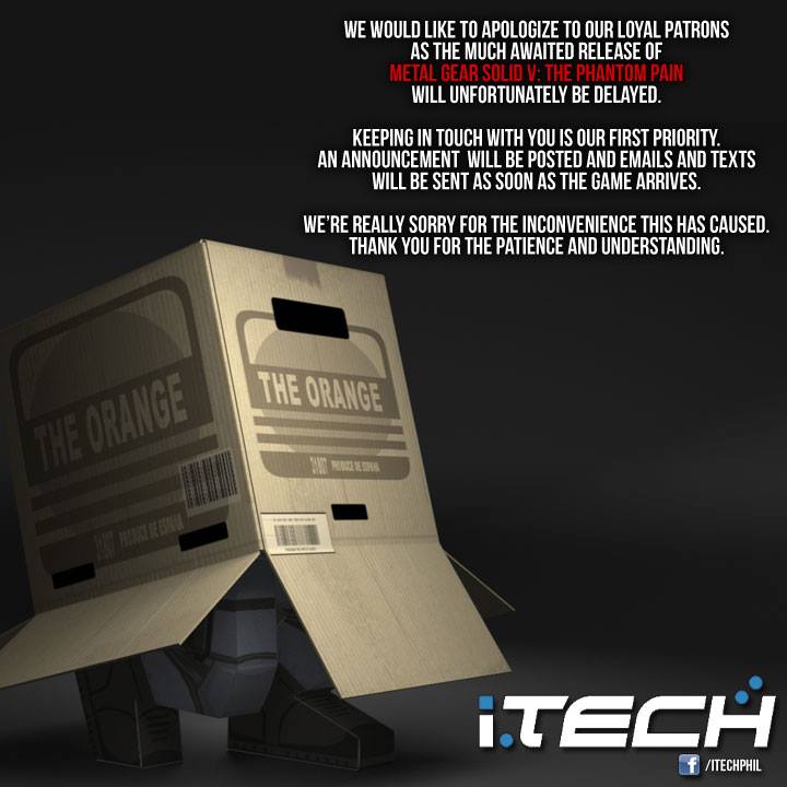 Today is the official launch day for the most anticipated Metal Gear Solid V: The Phantom Pain, well it was supposed to be available in your nearest game store but as of right now, the release of the game will be delayed. The speculation started when some gamers received a text notification from the game retailers where they preordered their copies of The Phantom Pain saying that their game copies will not reach the supposed launch date and it might be available at the end of the week. Most of the large game retail stores have posted their advisories to their Facebook pages regarding the delay of the shipment, this also includes the limited edition package and the PlayStation 4 MGSV bundle pack. It was noted that they will notify the public on the availability of the games. But The Phantom Pain was not the only game that got involved in the delayed release, games such as Mad Max and One Piece Pirate Warriors 3.
