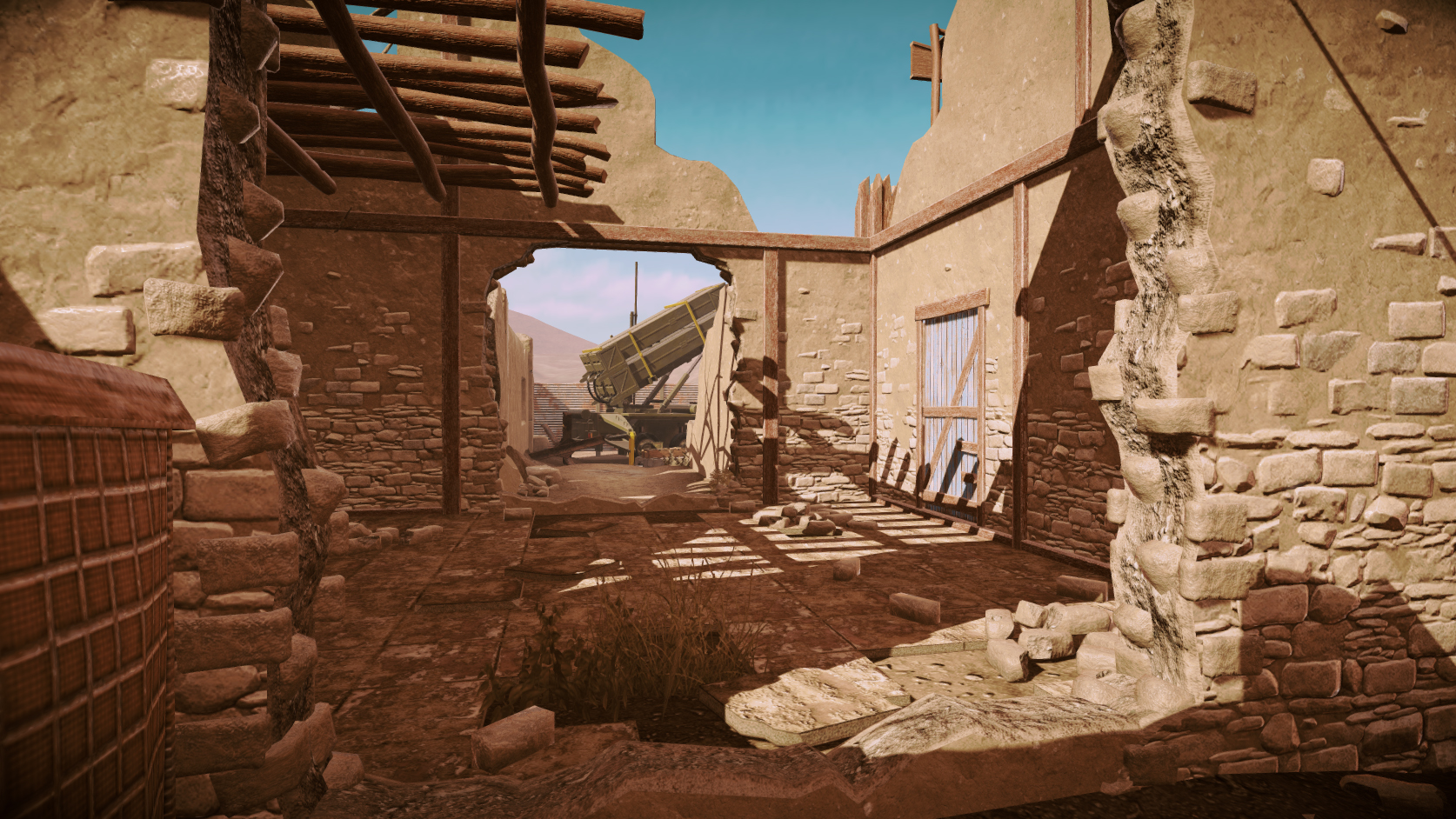Soldiers will battle in the new desert themed map, Razed Fort. The map contains several collapsed buildings and obstructions, varying ground levels, and an open trench running through the middle of the map. Razed Fort will create several vantage points for close and long ranged strategies. All soldiers over level 10 will be able to experience Razed Fort.