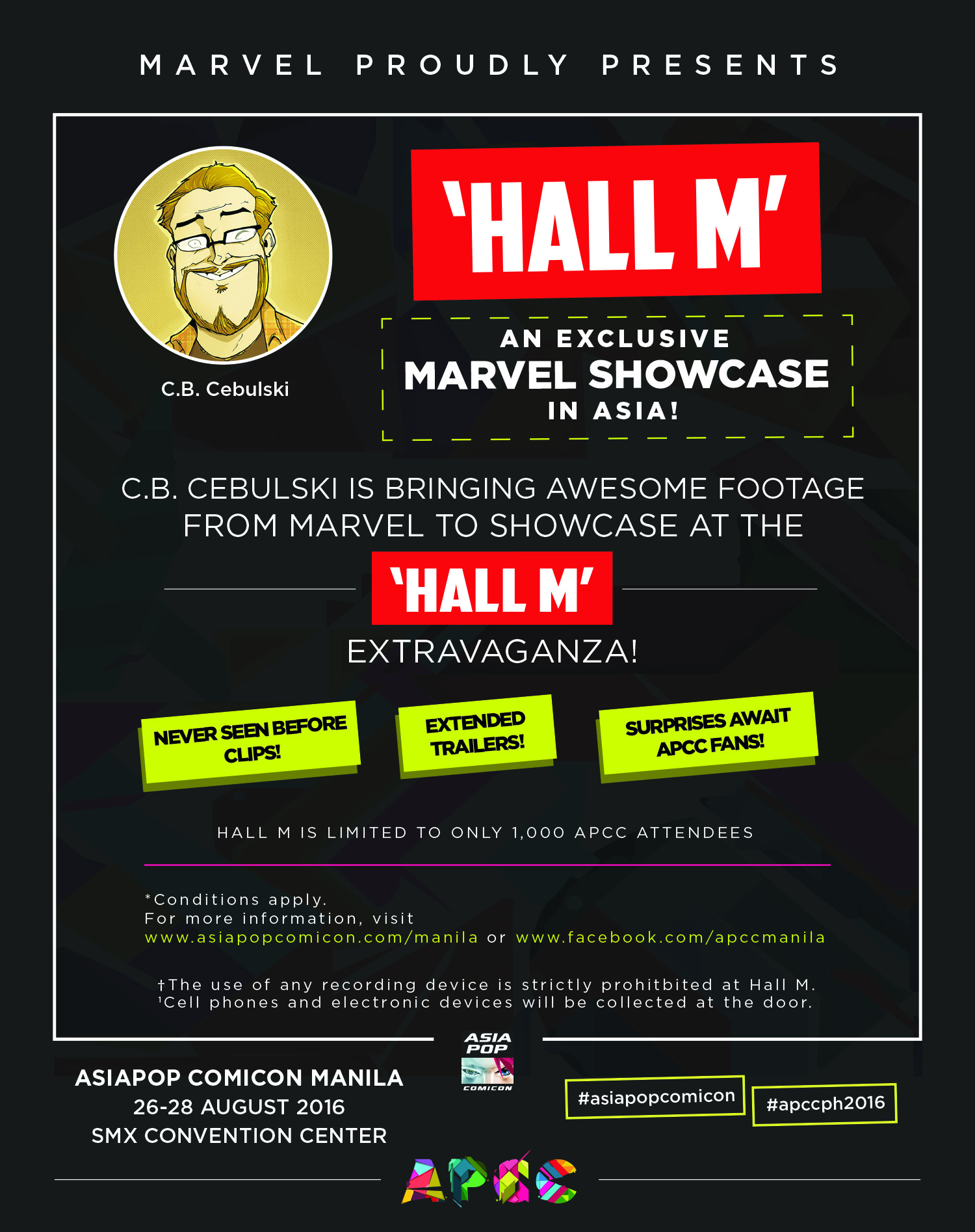 Fans will be treated to never-before-seen footage outside of San Diego Comic Con of Marvel’s upcoming Doctor Strange film at APCC Manila’s Hall M, including content from Marvel’s television and web series. Hall M is limited up to 1,000 attendees.