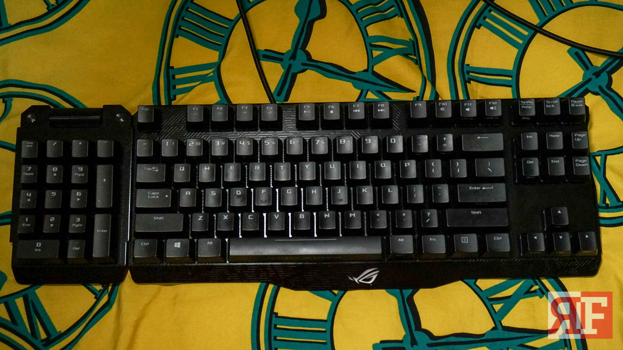 The first thing you will notice with the ROG Claymore is that it’s lighter than your standard mechanical keyboard which is usually at more a kilogram, the ROG Claymore is less than a kilogram considering it is built as a full keyboard, taking off the numpad will put the Claymore at less than 800 grams. This makes it lighter to carry to LAN Parties or other gaming tournaments that require you to carry your own gaming gear, and good thing the package includes two keyboard pouches to store your Claymore when you are on the go.