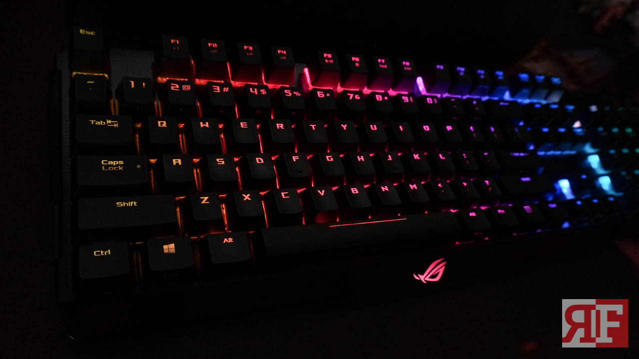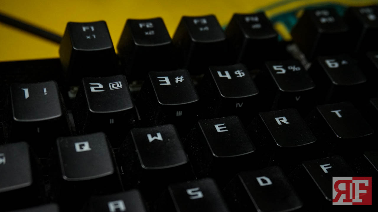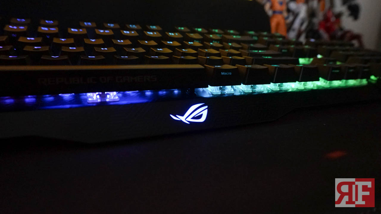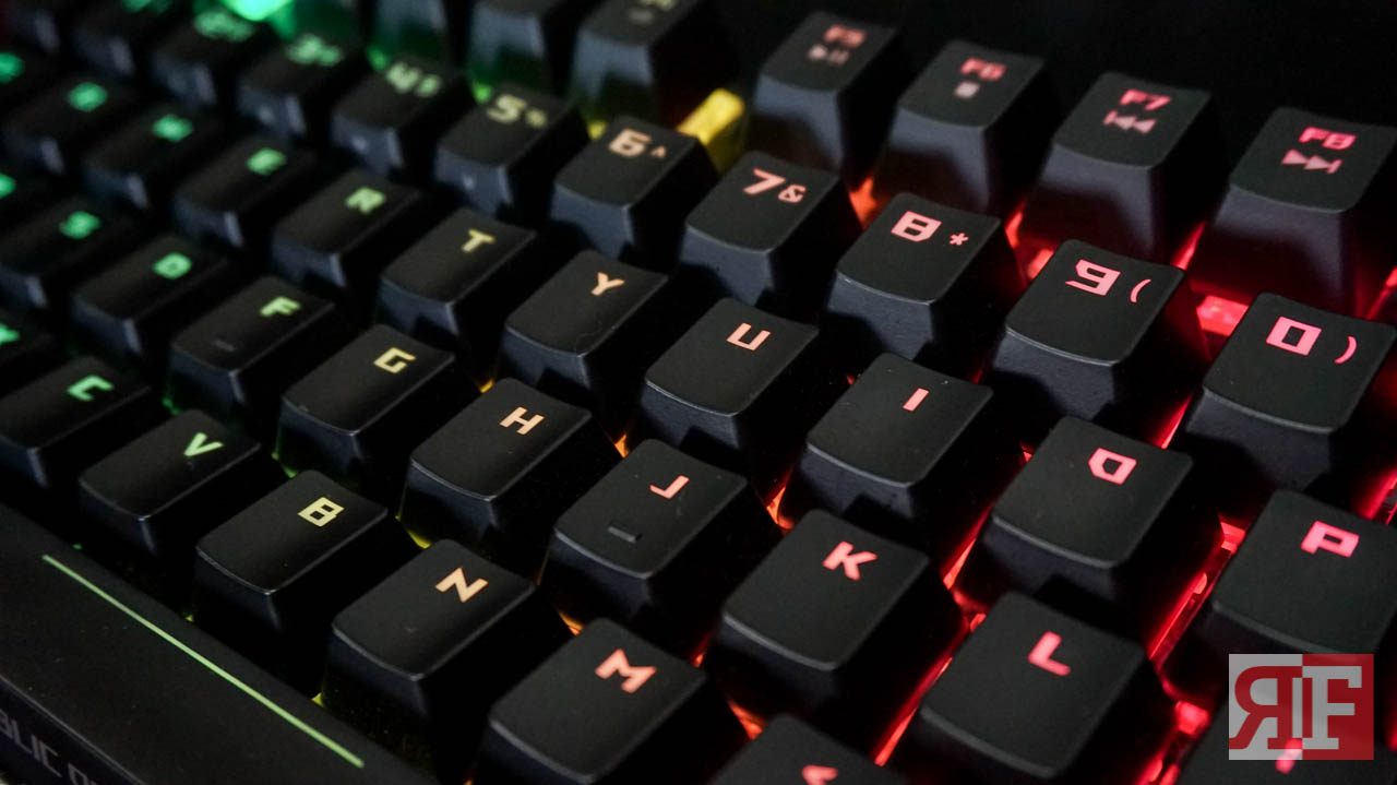 There are no additional keys for the Claymore that provides additional functions such as a dedicated media control, but it features an Fn key that lets you use some of toggle some keys on your Claymore to use other media functions, from LED brightness to multimedia controls to synchronizing to other Aura-supported components and even overclocking directly by just pressing a combination of keys. The font style used for the Claymore’s keys shows a sharp edgy design but still make the letters clean and easy to read.
