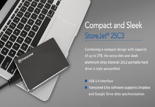 Transcend Information, Inc., a leading manufacturer of storage and multimedia products, is pleased to introduce the ultra slim portable storage, StoreJet 25C3, as the essential gadgets for the professionals. Featuring a stylish Aluminum Alloy enclosure and USB 3.0 interface for blazing-fast data transfer rate, the StoreJet 25C3 is a perfect representation of both style and technology.