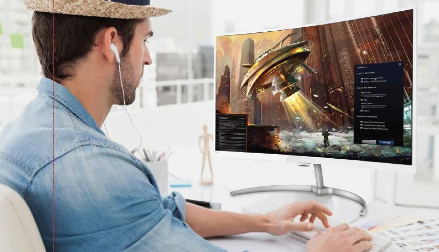 By the end of the day, when you are done with work and just need a little enjoyment, your curved monitor is ready to go on double duty as an entertainment unit, rendering photos in vibrant colors or playing movies with a cinematic feel with full-screen view.