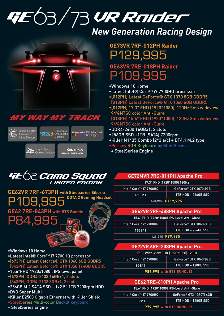 The GE series has always been an all-time classic favored by gaming enthusiasts since its inception. But this year, the brand new GE63VR/73VR Raider has been given a new identity and weaponry inspired by exotic sports cars; with more angular appeals, looking like a true game changer to enthusiastic gaming.
