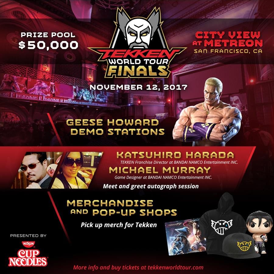 Leading interactive entertainment media publisher and developer BANDAI NAMCO Entertainment Asia today announced details for its upcoming TEKKEN World Tour Finals tournament, presented by Nissin Cup Noodles®. In an unprecedented break from tradition, for the first time in its 20+ year franchise history, the TEKKEN World Finals will be held outside of Japan. TEKKEN fans will bear witness to the crowning of a new TEKKEN World Champion on 12th November, 2017 as 16 of the best fighters from around the globe converge upon the City View at Metreon in San Francisco, California for an all-day battle royale to determine a new TEKKEN champion. The event will also be livestreamed exclusively on social video service Twitch.