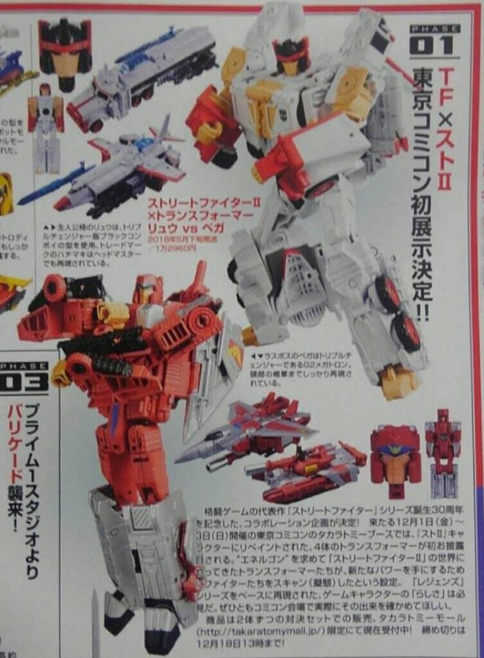 Japanese toy maker Takara was revealed to be launching a limited edition Transformers toys in collaboration with Capcom’s Street Fighter II game franchise. The reveal was found from a magazine scan of a popular Japanese toy/hobby magazine that shows the newest collaboration project.