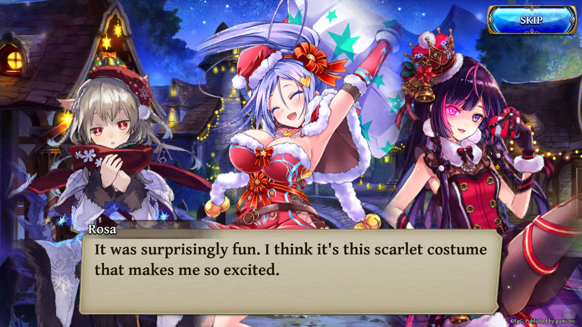 Character Skins are now sold in the Winter Holiday Secret Shop! The first to be made available are the Winter-Exclusive Skins for fan favourite characters, Lofia, Shayna and Rosa – so get them during this limited time to dress the three friends for their wild Santa-chasing adventure.