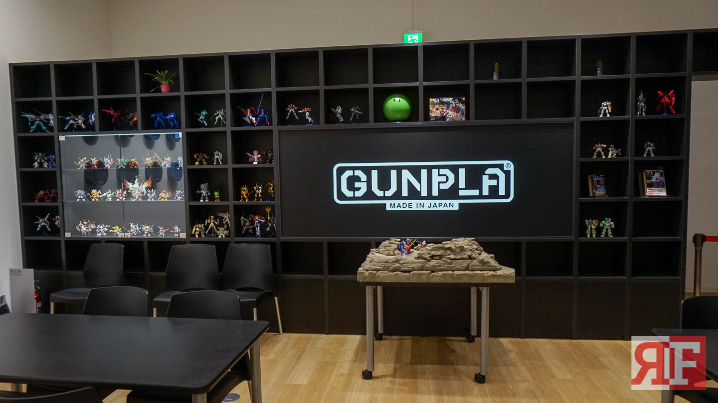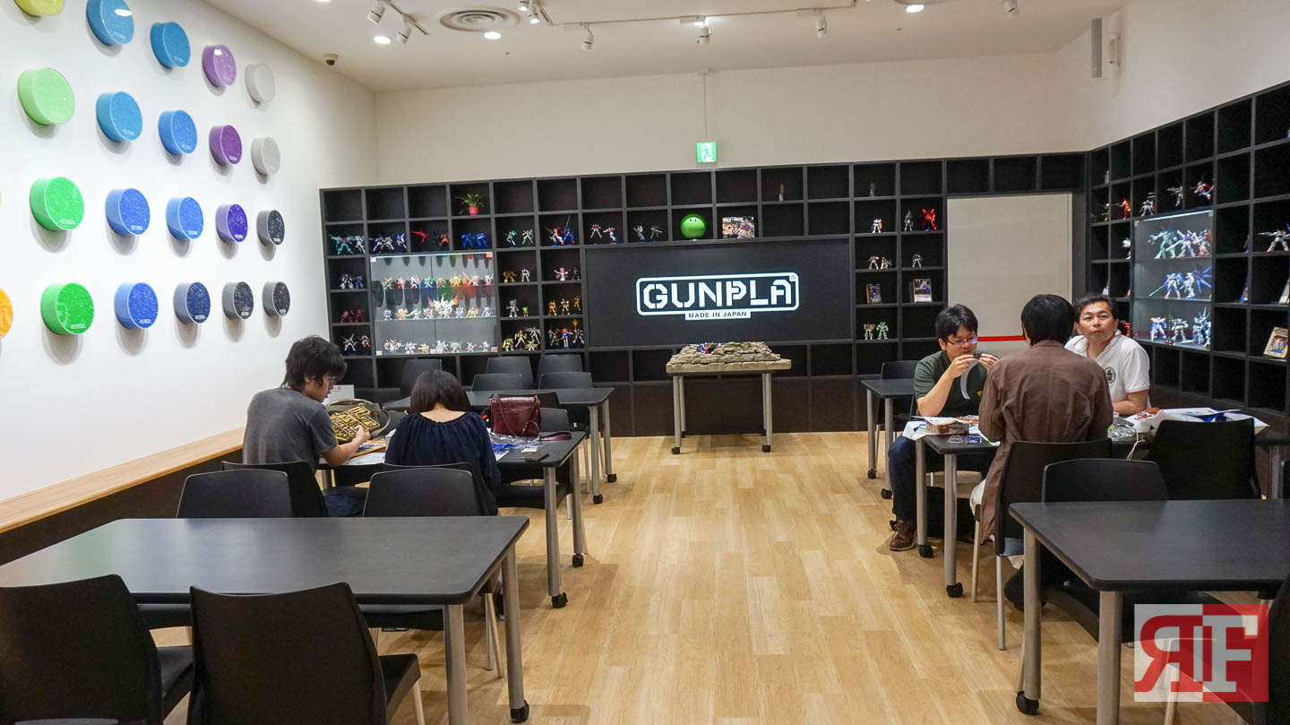 A Gunpla builders room is installed at Gundam Front where customers and enthusiasts can use the room to build their kits, there are large tables where group builds are encouraged. There is even a station where the Gunpla crew shoot their livestream sessions for special promos or events.