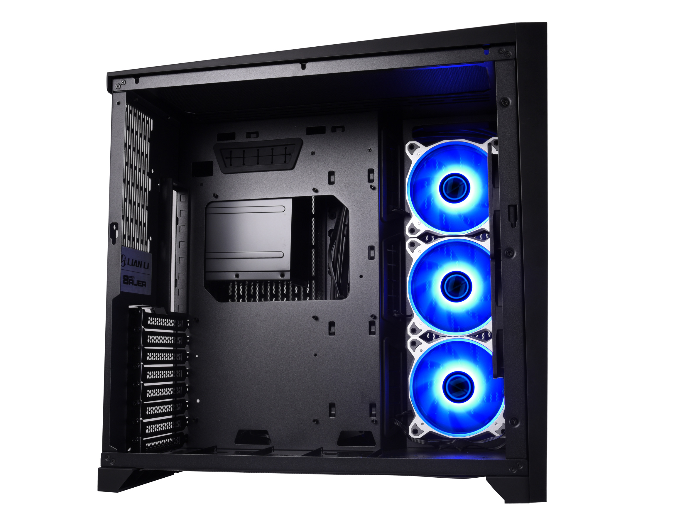 The PC-O11 Air features USB 3.1 Type-C out of the box with a compatible front panel header to support modern devices as well as traditional SuperSpeed USB3.0 ports in the front panel. This removes the need to reach over to the back of your motherboard to connect your devices. Lian Li supports motherboards up to EATX standard size. The motherboard tray on the PC-O11 Air is extended and is angled on the far-end to provide a more visually-pleasing passthrough for your cables via the grommet holes.