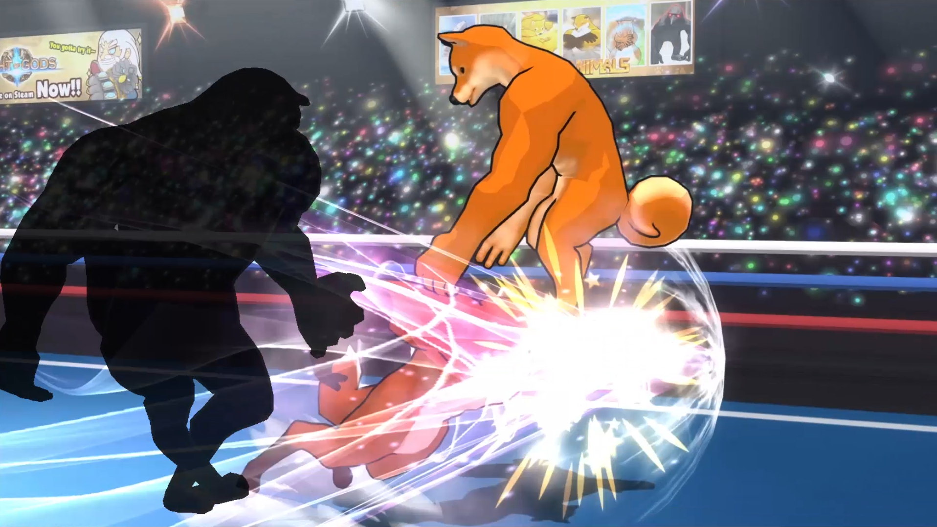 Fight of Animals is a 1-on-1 fighting game. The idea came from the popular meme pictures from the web. Those pictures were taken by a very weird moment, and that makes the animal in those pictures look very funny or weirdly adorable like “Power hook doge”,” Muscle Fox”,” Walking Cat” and” Magic Squirrel” … They all will be the playable characters in the game.