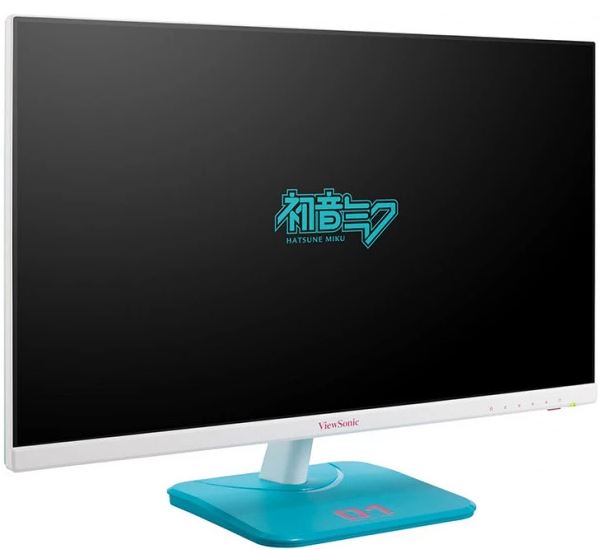 The ViewSonic VA2456-MIKU is a 24” Full HD borderless monitor collaboration with Hatsune Miku. The monitor adopts Hatsune Miku’s unique turquoise color and comes with a logo on the stand as well as on the back of the monitor. Hatsune Miku’s startup image welcomes you when you turn on the monitor with a built-in, custom startup image. With SuperClear IPS technology and Full HD resolution, images are clear and detailed from a wide range of viewing angles. The monitor’s extensive connectivity options include HDMI, DisplayPort, and VGA allowing increased setup flexibility when connecting to other devices.