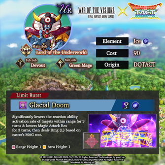 - Zoma (UR) Unit – Zoma is a Ice-type UR unit, whose main job is Lord of the Underworld and sub-jobs are Devout and Green Mage.