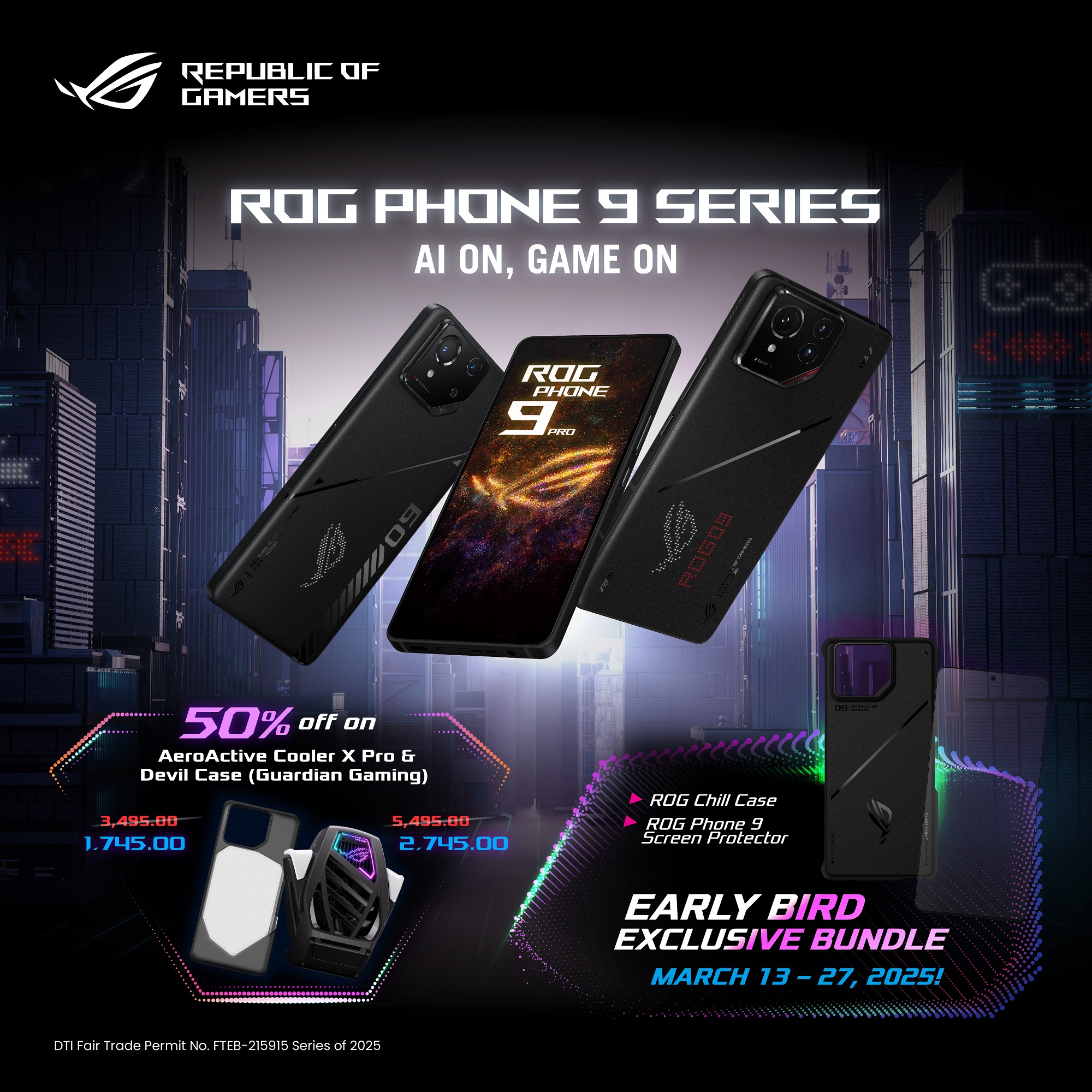 And to top it all off, the ROG Phone 9 series will launch at a special limited early bird starting price of 39,995 PHP and early bird buyers will also receive an ROG Chill Case and ROG Antibacterial Glass Screen Protector. There will also be an exclusive 50% discount for selected accessories, including the Aeroactive Cooler X Pro and Devil Case (Guardiang Gaming).