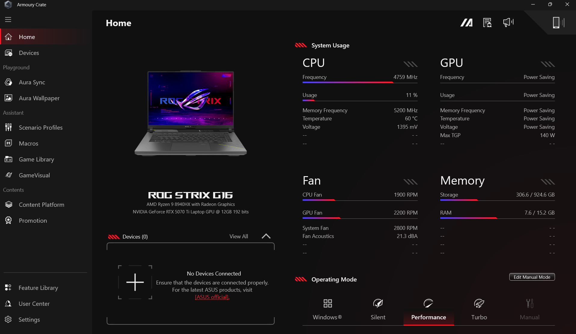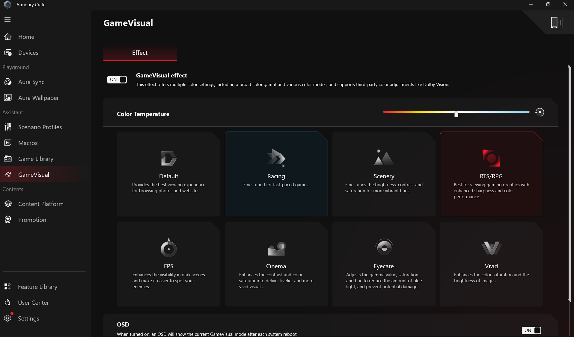 The ROG Armory suite now offers options to optimize your gaming experience. You can customize presets for specific games from which performance profile to run, adjusting the color display preset and even the type of RGB lighting to display when running the selected game. It lessens the need to manually adjust the settings whenever you run a different game.