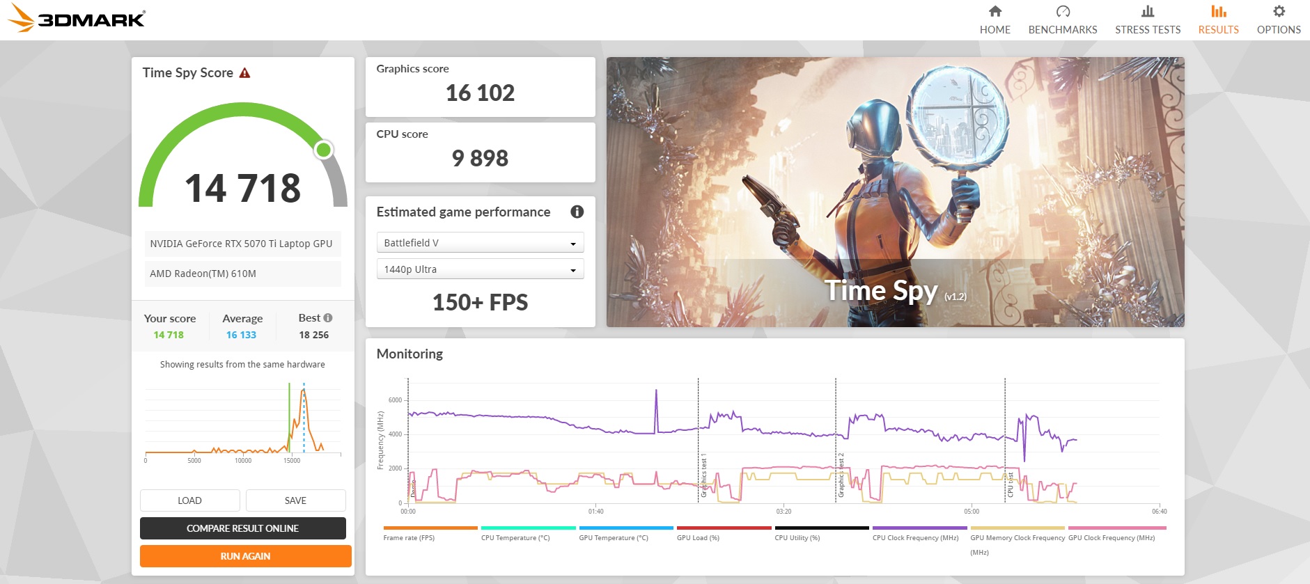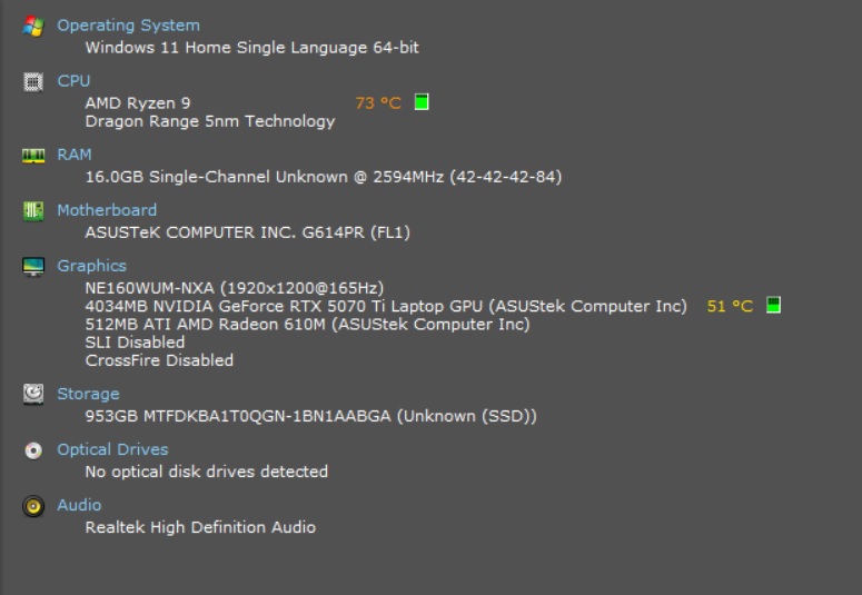 As for performance, the Strix G16 runs exceptionally well with the AMD Ryzen 9 8940HX CPU as shown on the PCMark results. When testing the RTX 5070 Ti, it can run all of the mid-range games with ease, from indie games to online shooter games. Though you may have to do some tweaking when running more demanding games such as Black Myth Wukong and Monster Hunter Wilds, which have some PC optimization issues that will require you to make some adjustments to the graphics settings.