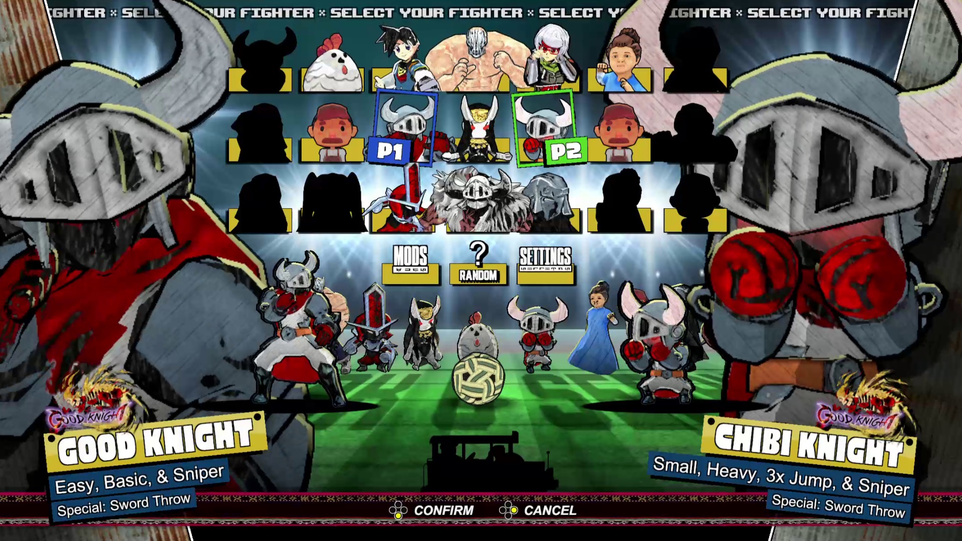 - 21 Characters! 21 Arenas! — A deep roster of guest characters from other games, a chicken, an Asian mom, and characters original to this lore.